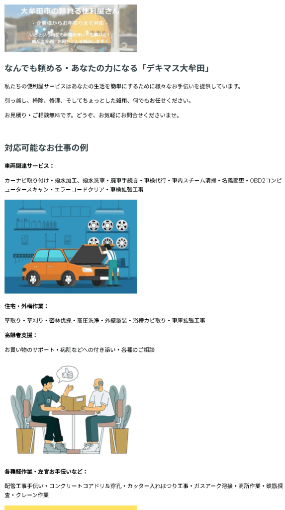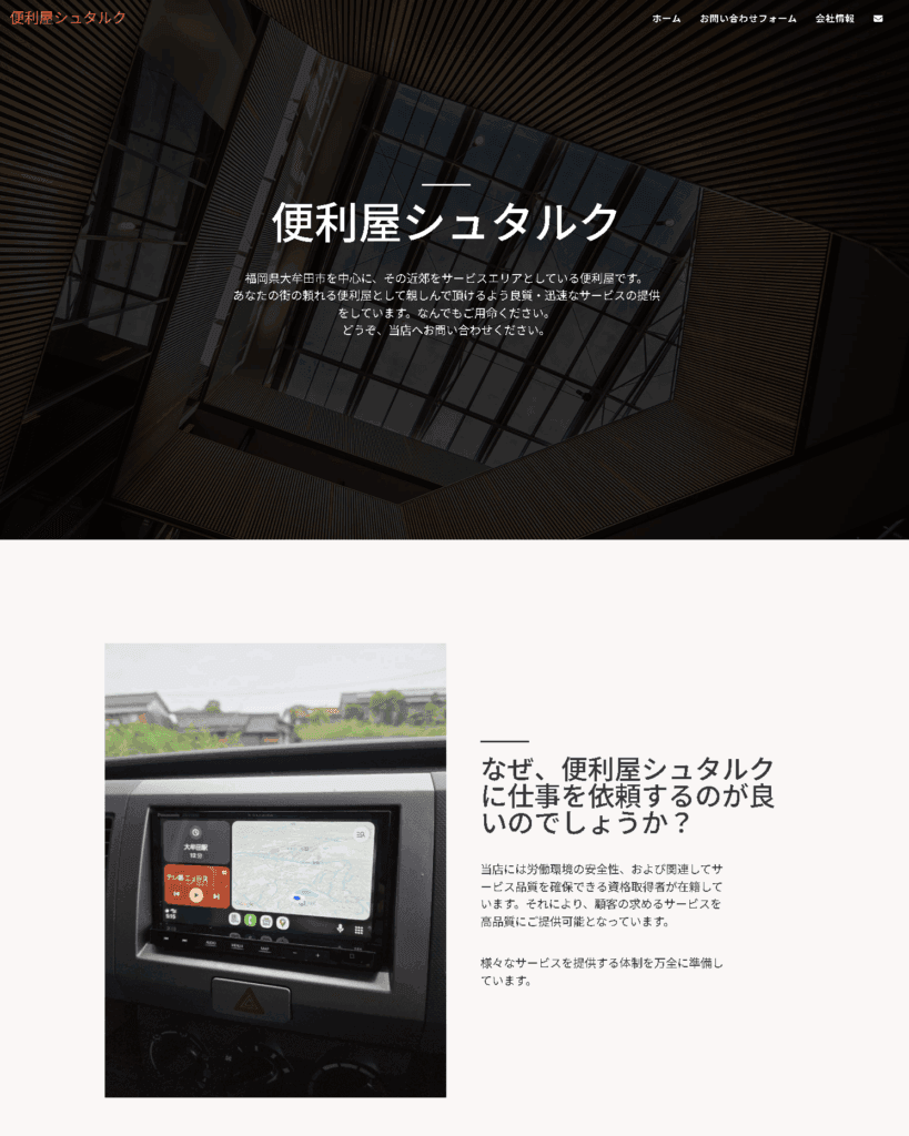 作成事例:当社のブランド名義「便利屋シュタルク」で作成したホームページです。WordPressを使用し、デザイン性を持ったホームページです。