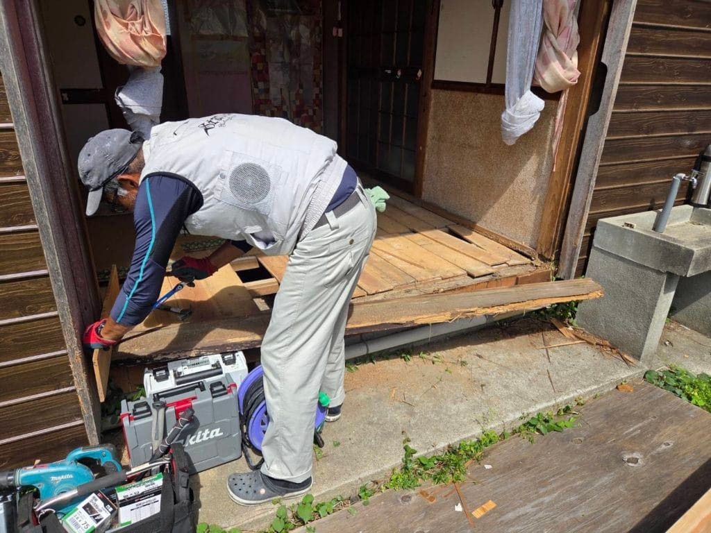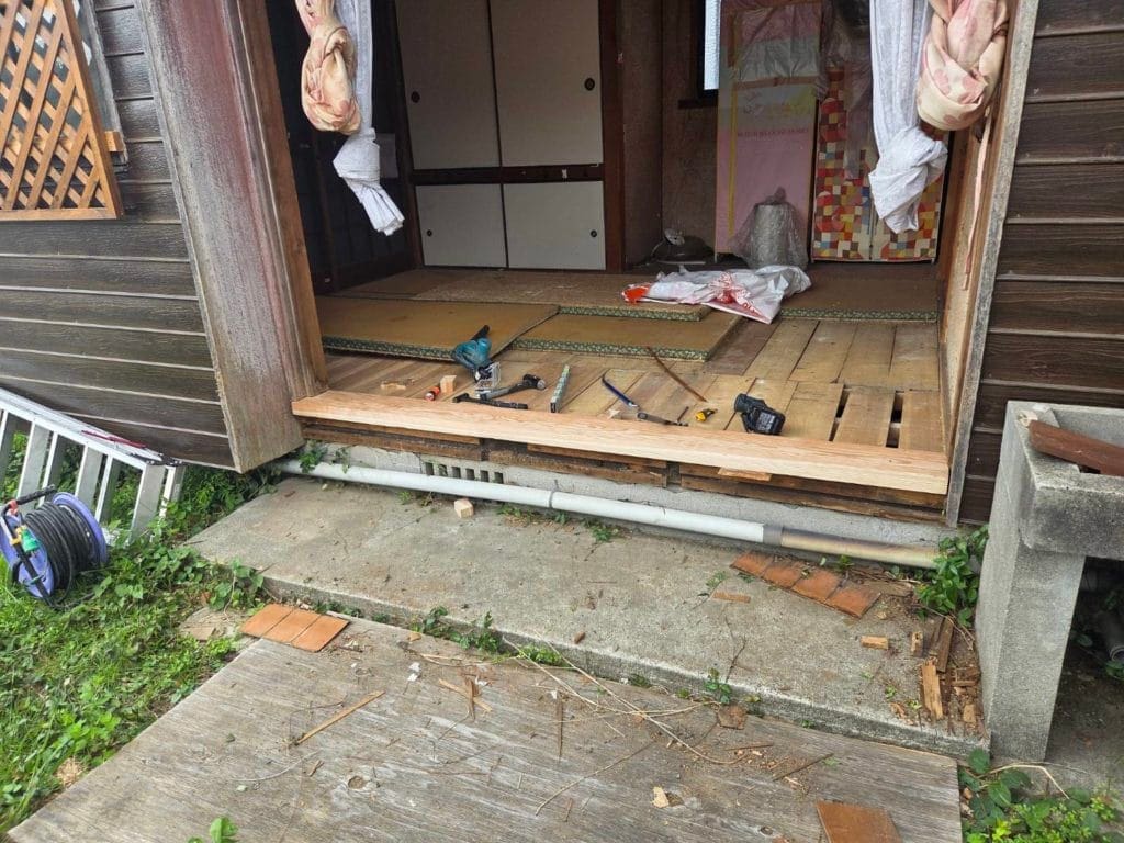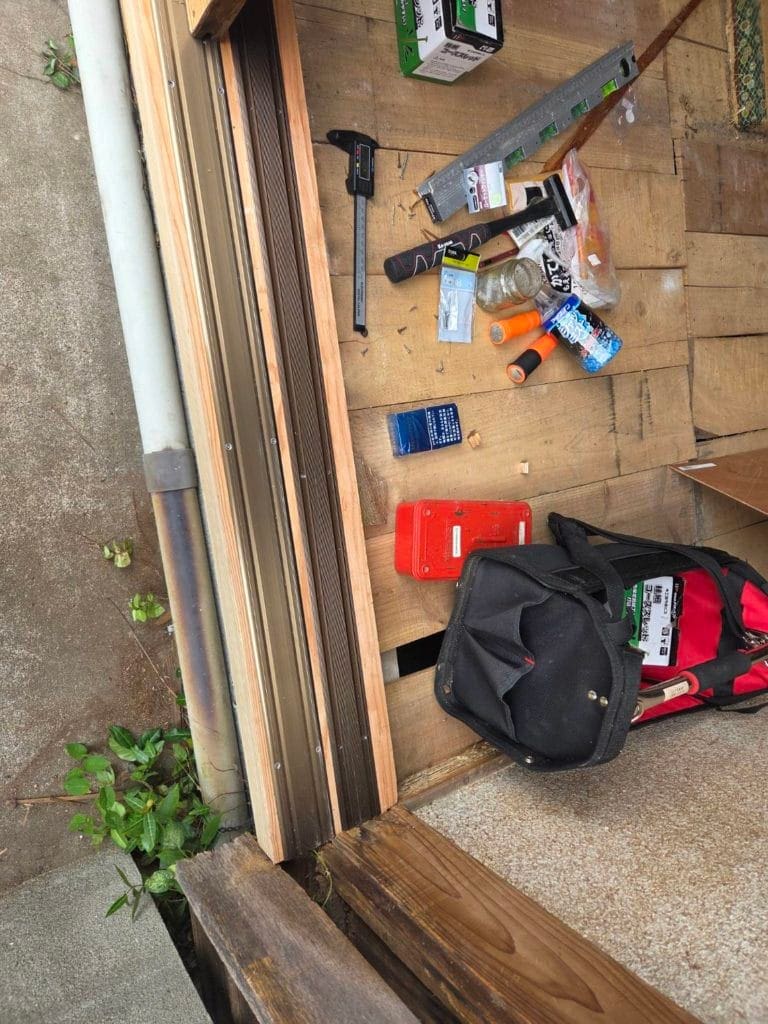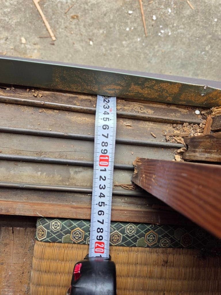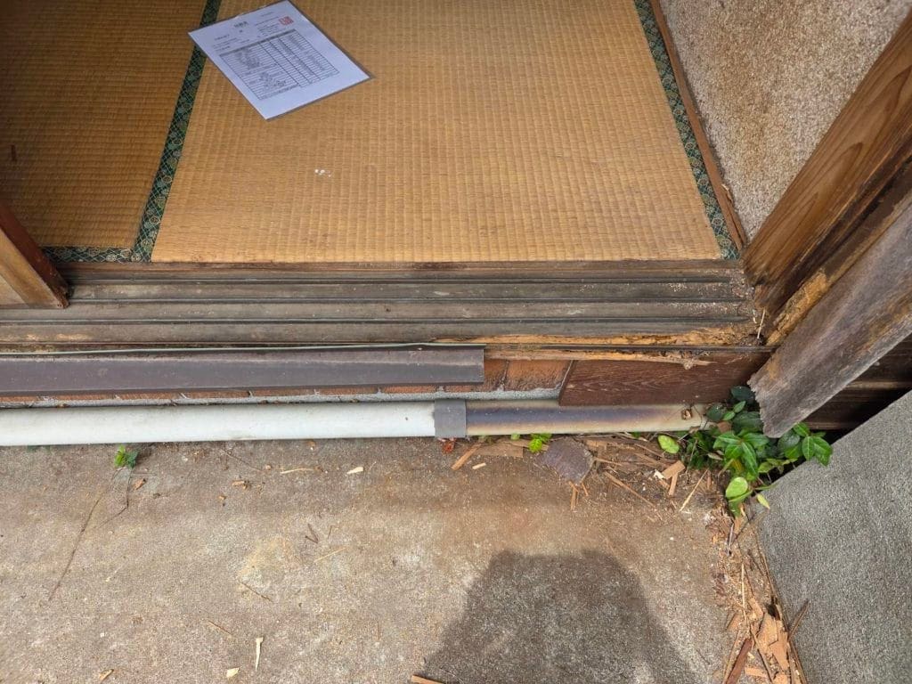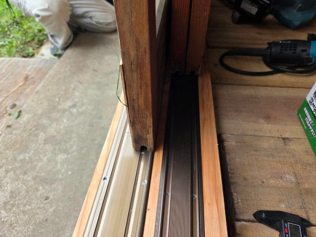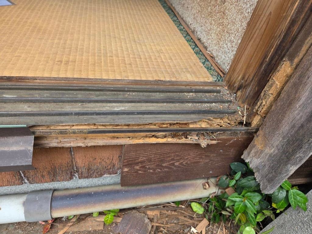 今回のお客様のご要望は、腐れ落ちてしまった敷居の修繕工事でした。