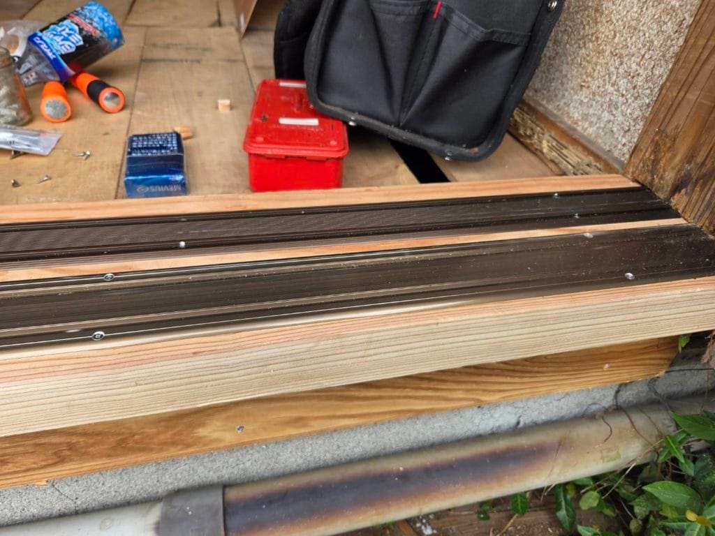 職人がしっかりと計測しつつ、スムーズに動く扉となるようにレールを付けて交換・修繕いたしました。