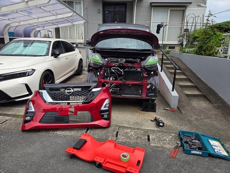 - 作業内容:フロントバンパーの取り外し → 新品バンパーの取り付け